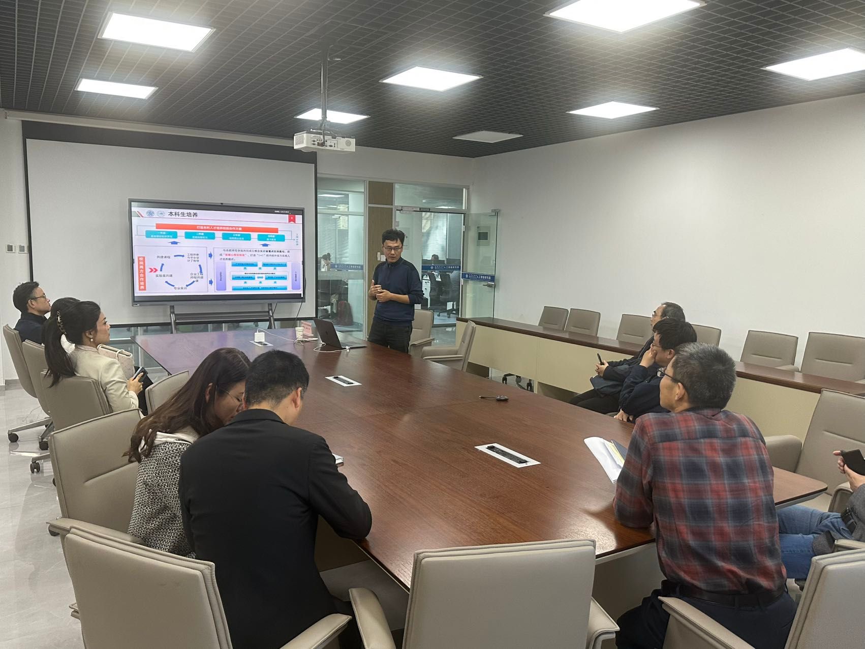 2024年10月24日,安徽省教育厅高教处处长高原一行来访合肥综合性国家科学中心人工智能研究院,考察了beat365网页版登录官网与合肥综合性国家科学中心人工智能研究院共同成立的“智慧心育”省级校外实践基地。基地负责人苏喻向高原一行进行汇报,合肥综合性国家科学中心人工智能研究院副院长李兴权、安徽医科大学人事处副处长高杉、中国科学院合肥物质科学研究院人事处副处长王辉、安徽财贸职业学院人事处处长吴元君、安徽省人社厅专技处二级调研员李永坤、省教育厅高教处一级主任科员任雯君共同参加了本次工作汇报。