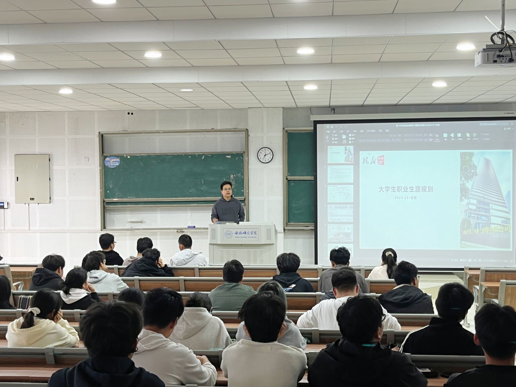 为提升学生的职业规划意识及未来发展方向,引导学生树立正确择业就业观,11月13日下午,beat365官网登录入口于滨湖校区博学楼D101教室举办了计算机类专业大学生职业生涯规划讲座。此次讲座由皖新传媒数字人才基地专业讲师于康主讲,共计百余名学生参与讲座。