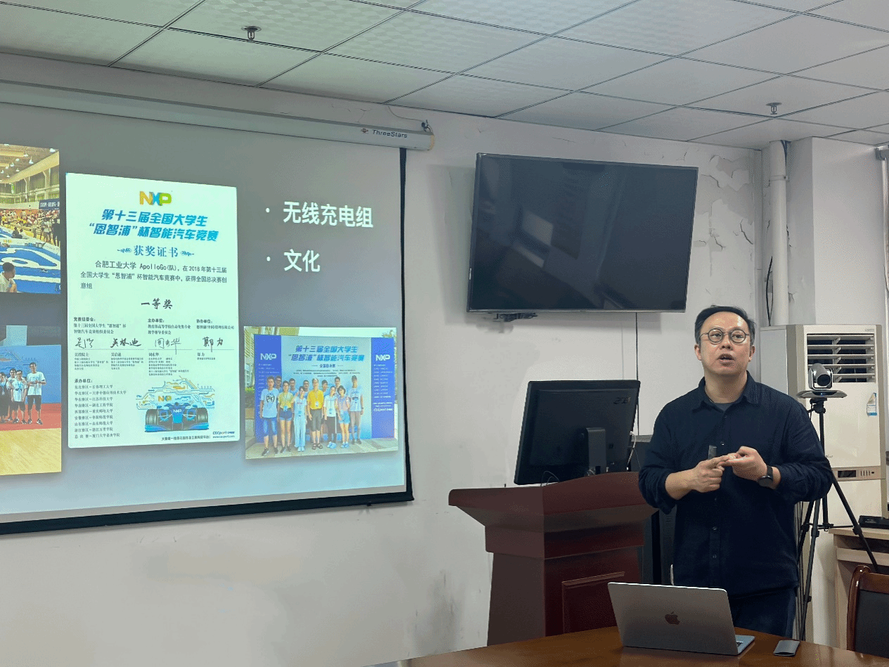 张阳副教授从全国大学生智能汽车竞赛的起源讲起,回顾了自2006年首届竞赛以来的二十年光辉历程。他结合自己的参赛和指导经历,生动阐述了智能车竞赛在推动创新教育、实践教育中的积极作用,指出竞赛不仅考验学生的专业知识和动手能力,更培养了学生的团队协作精神和解决问题的能力。张阳副教授详细介绍了合肥工业大学智能车团队在竞赛中的实践与思考,强调智能车竞赛是人才培养的重要载体,能够让学生在实践中锻炼创新思维和实践能力。他还就如何激发学生对科技创新的兴趣、智能车竞赛在创新教育中的价值等问题进行了深入探讨,提出高校应充分利用智能车竞赛等平台,加强与企业、行业的合作,为学生提供更多实践机会和创新资源,培养更多创新型人才。