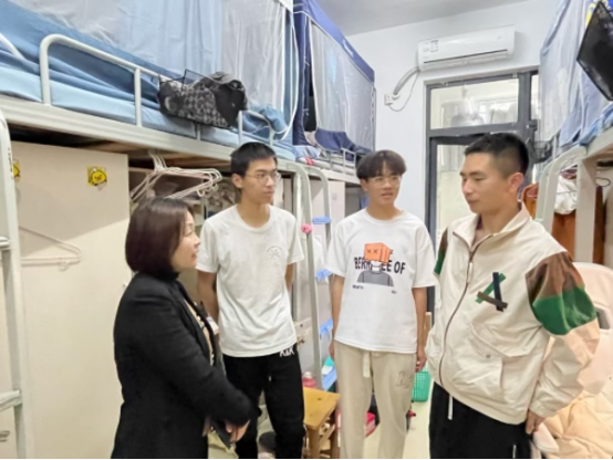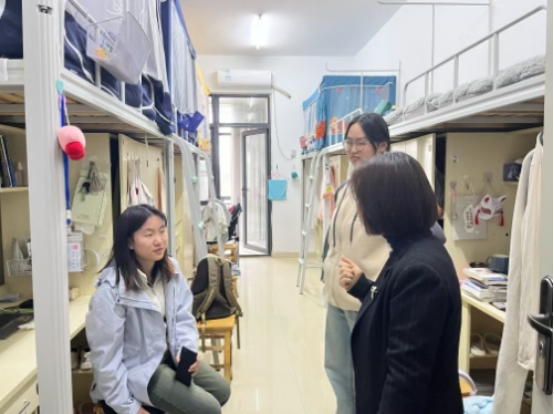 本网讯为切实做好学生宿舍安全教育及管理工作,进一步推进“优良学风宿舍”创建,beat365官网登录入口近期开展了春季宿舍安全卫生检查工作,学院党委副书记杨萍带领辅导员及学生干部深入学生宿舍,进行安全卫生检查。